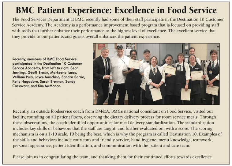 Congratulations Berkshire Medical Center Food Service Team for completing the Destination10 Customer Service Academy!  The excellent customer service skills you learned will enhance the patient experience at your facility.  It was an honor to work with such an outstanding team!