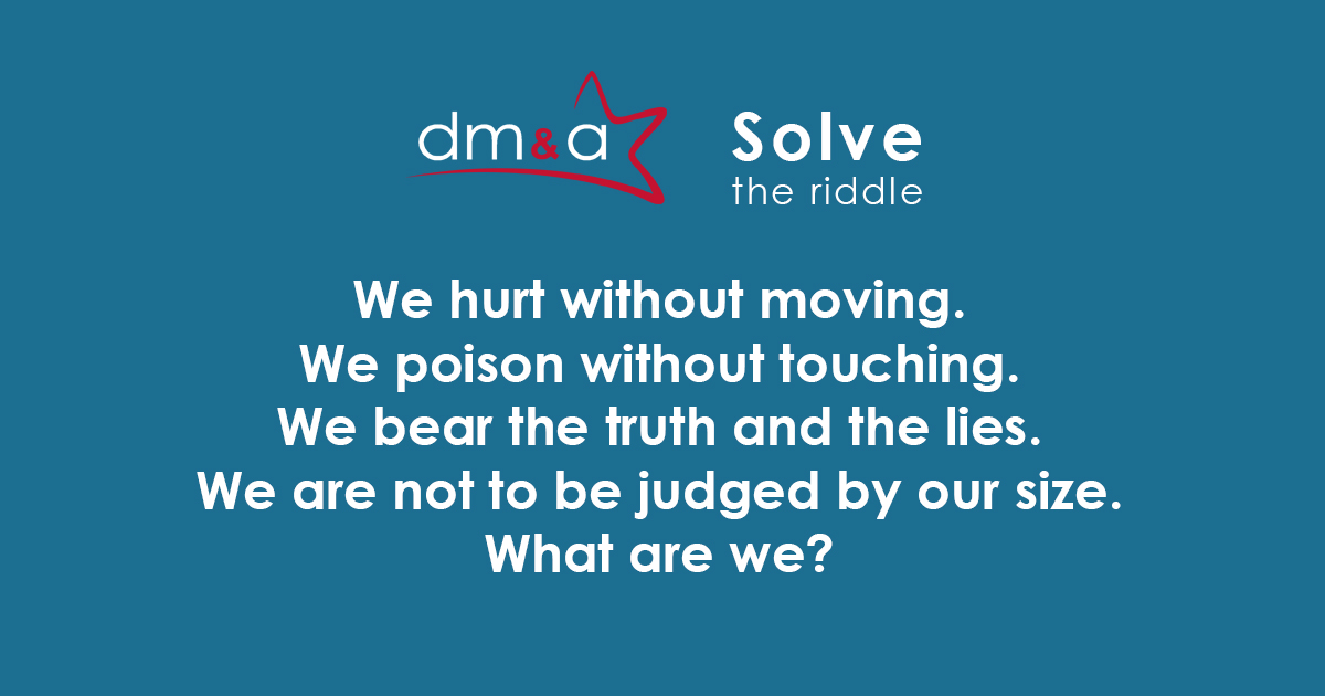 Solve This Riddle Gallery Solve This Riddle Riddles Solve This Riddle Words are very powerful, therefore, choose them [...] By DM&A|2021-04-19T16:10:23-07:00April 19, 2021|Riddles|Comments Off on Solve This Riddle Read More