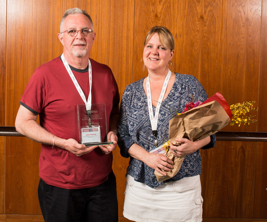 Richard Schmidt and Phelps Memorial Hospital Center Honored with 2015 Good to Best Excellence in Room Service and Patient Satisfaction Award. Award was accepted on behalf of Phelps by John Teeling and Lori Gorman.