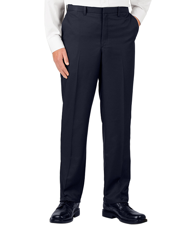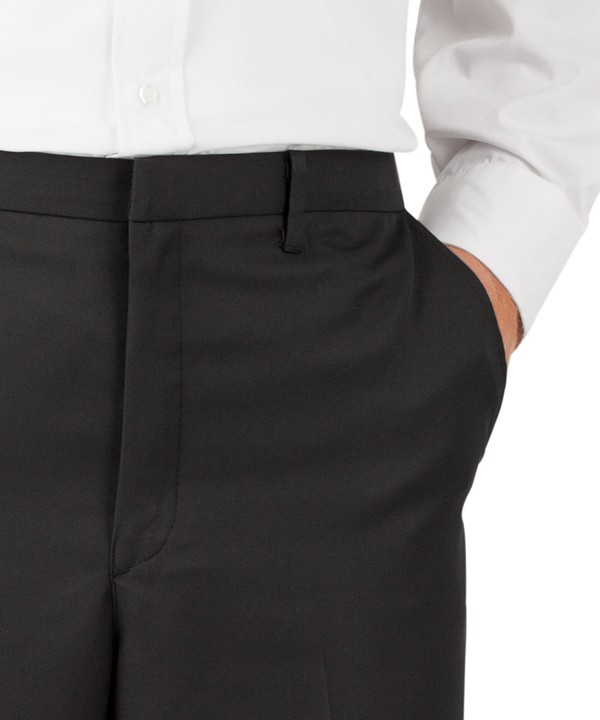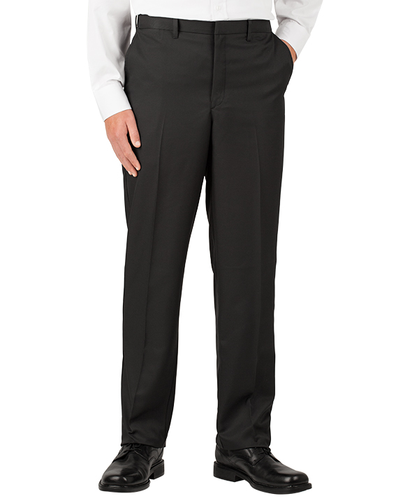 Flat front trousers for a more formal look. Easy-care microfiber will keep you cool and comfortable in any work environment.
