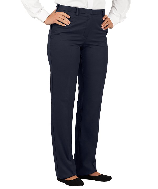 Flat front trousers for a more formal look. Easy-care microfiber will keep you cool and comfortable in any work environment.