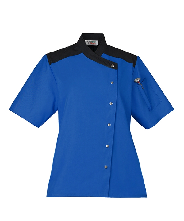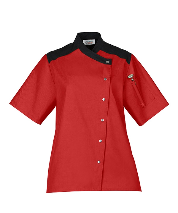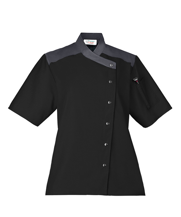 Turn heads with a more stylish chef coat. High-contrast trim and an asymmetrical design stand out from the crowd. A comfort-pleated back, short sleeves, and side vents keep you as cool as you look.