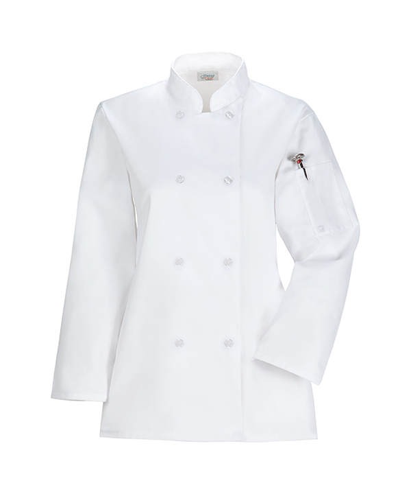 Traditional Chef Coats are durable, classic, and versatile. A stand-up collar and a double-breasted front provide timeless appeal in a flattering, feminine fit.